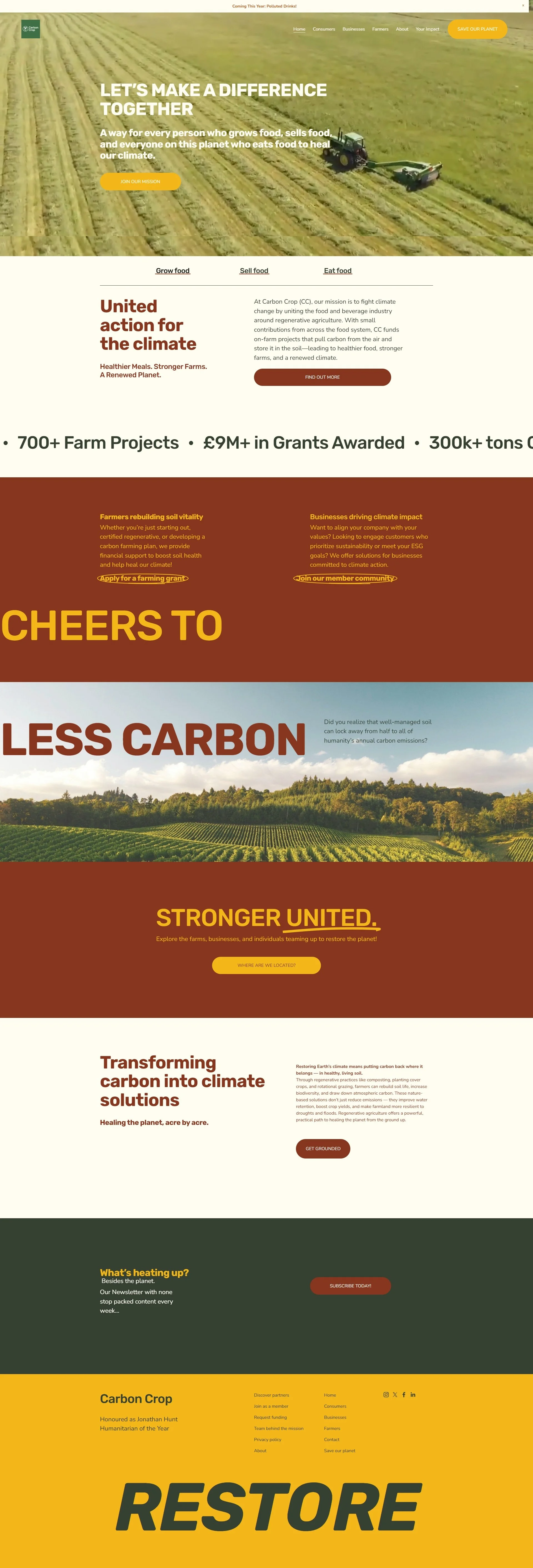 I designed a full mock brand for Carbon Crop, an environmental movement focused on reducing pollution and carbon emissions. This one was built entirely from scratch—no templates, no copy-paste jobs. Just a clean, bold vision brought to life through custom layouts, cohesive branding, and a hand-crafted logo. The aim was to create something that felt fresh, impactful, and rooted in purpose—because saving the planet deserves more than a boring WordPress blog.